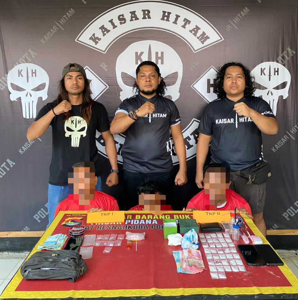 Dalam operasi pertama di Jalan Raya depan rumah seorang warga di Kelurahan Rabangodu Utara, Kecamatan Raba, Kota Bima, polisi mengamankan dua pria berinisial KA dan RM. Dari hasil penggeledahan, Tim Kaisar Hitam menemukan sembilan klip plastik berisi kristal yang diduga sabu, beberapa alat hisap, dan uang tunai sebesar Rp365.000.
