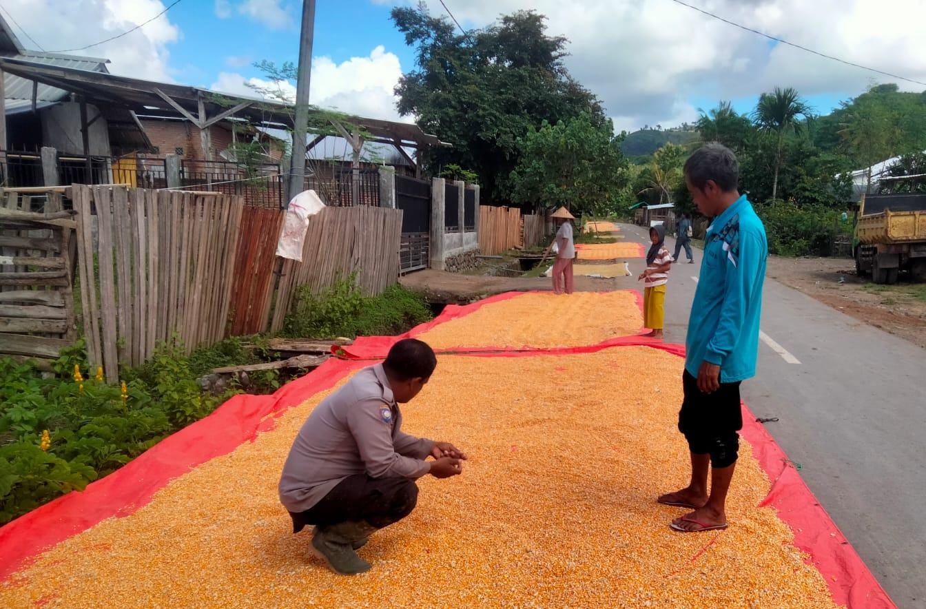 Bima, NTB (13 April 2025) – Bhabinkamtibmas Polsek Monta Polres Bima Polda NTB Aipda Suherman melaksanakan pendampingan ketahanan pangan nasional penjemuran jagung milik warga binaan di Desa Tolotangga Kecamatan Monta Kabupaten.