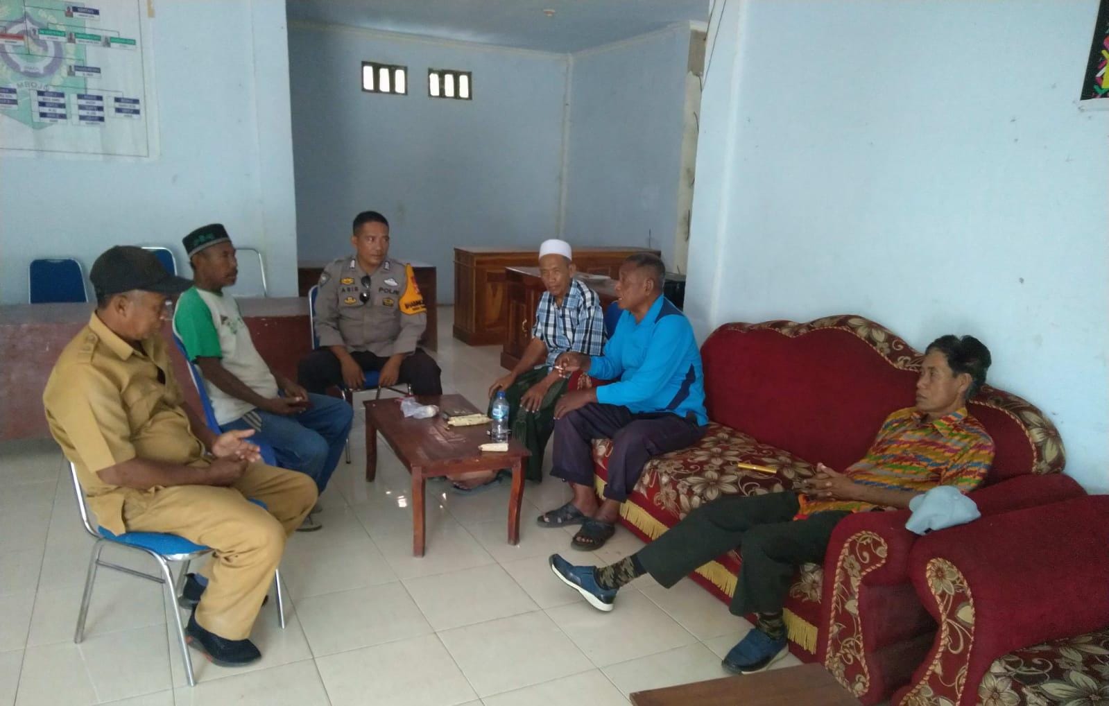 Bhabinkamtibmas mengajak Warga dan perangkat Desa bersama-sama menjaga suasana tetap tenang dan harmonis. memberikan imbauan agar warga tidak mudah terpancing oleh provokasi atau isu-isu yang dapat memecah belah persatuan.