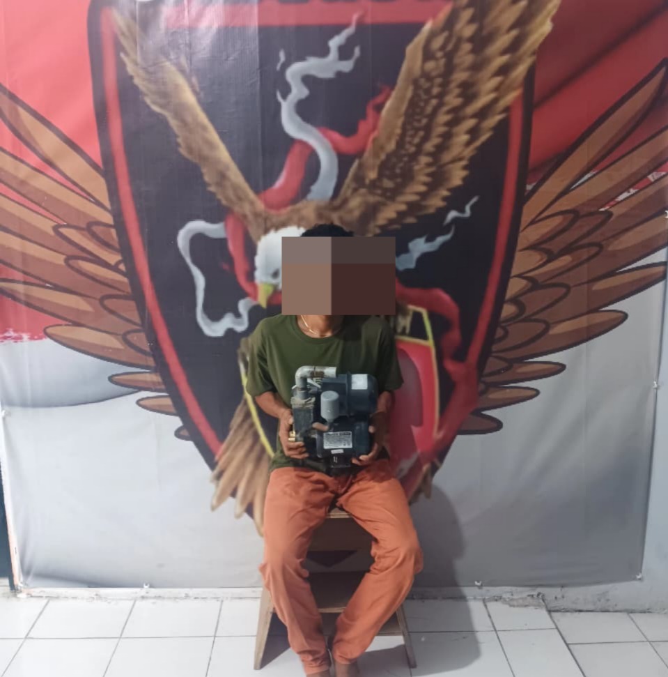 Barang bukti berupa satu unit mesin pompa air (Sanyo) diamankan bersama para terduga pelaku ke Mapolres Bima Kota untuk proses hukum lebih lanjut.