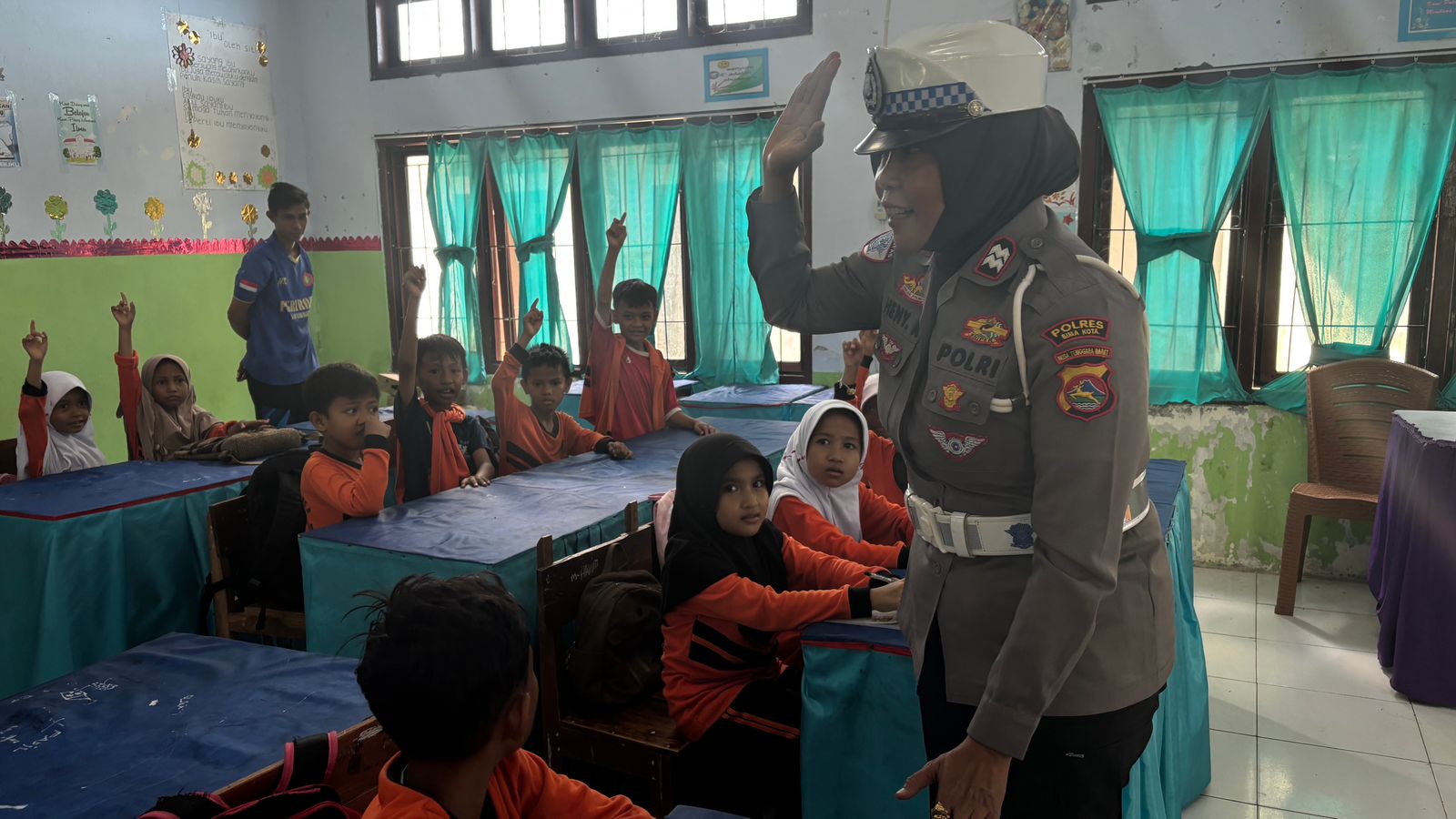 Kegiatan berjalan dengan penuh antusias dan keceriaan. Para siswa tampak aktif mengikuti setiap arahan dari petugas serta menunjukkan semangat tinggi dalam belajar tentang keselamatan di jalan.